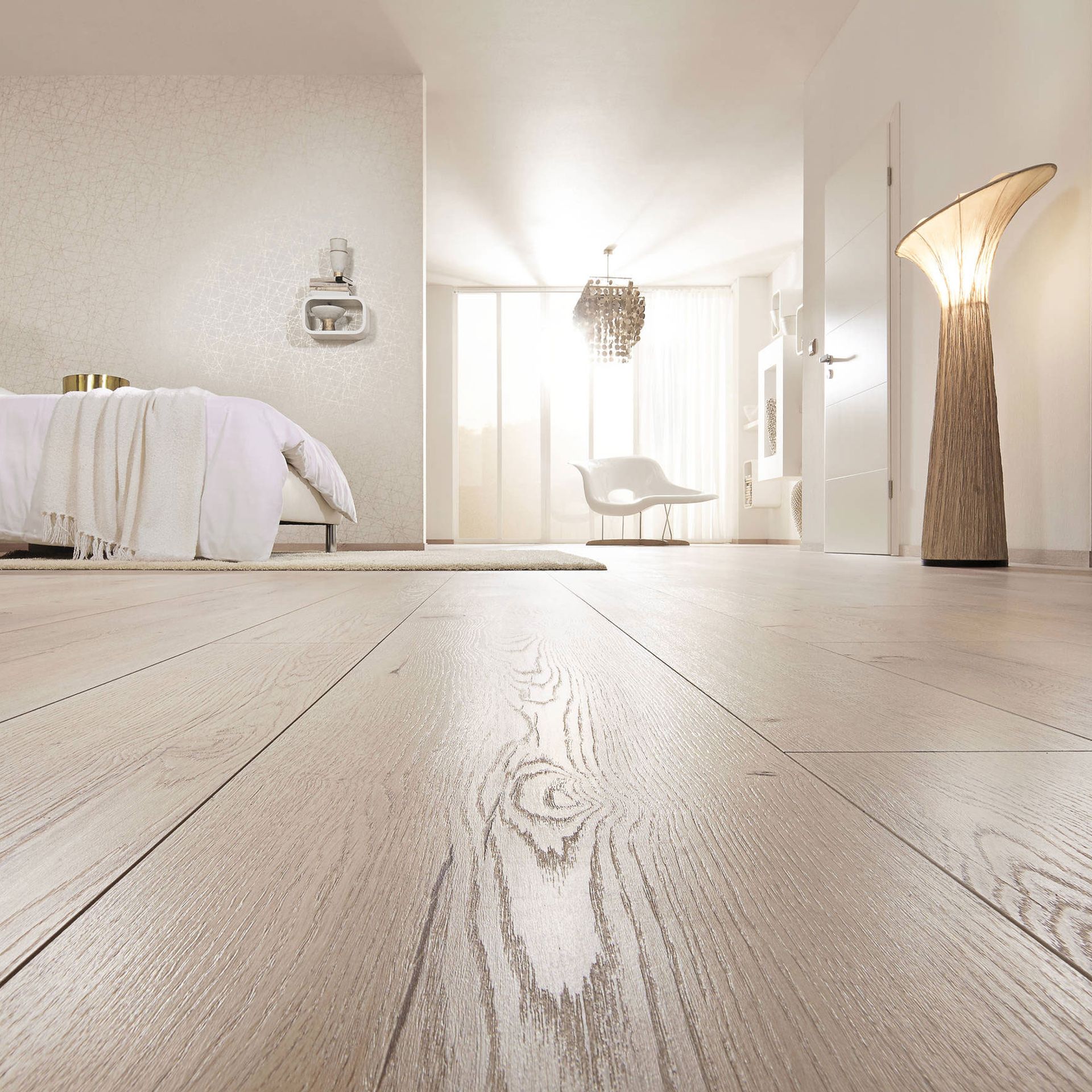 Was für den Laminatboden spricht: Zunächst einmal ist er sehr robust und besonders strapazierfähig. Diese Eigenschaften verdankt er den unter hohem Druck und ebensolchen Temperaturen gepressten Schichten. Die Deckschicht garantiert außerdem eine hohe Abriebfestigkeit. Laminat ist ein reiner Dekorboden, daher ist durch den digitalen Druck auf der Deckschicht praktisch alles an Design und Gestaltung möglich. Favorit ist aber immer noch die gute alte Holzoptik, die dem Parkett meist zum Verwechseln ähnlich sieht. Außerdem sind Laminate perfekt für Fußbodenheizungen geeignet – und meist sogar nebelfeucht wischbar, also äußerst pflegeleicht.