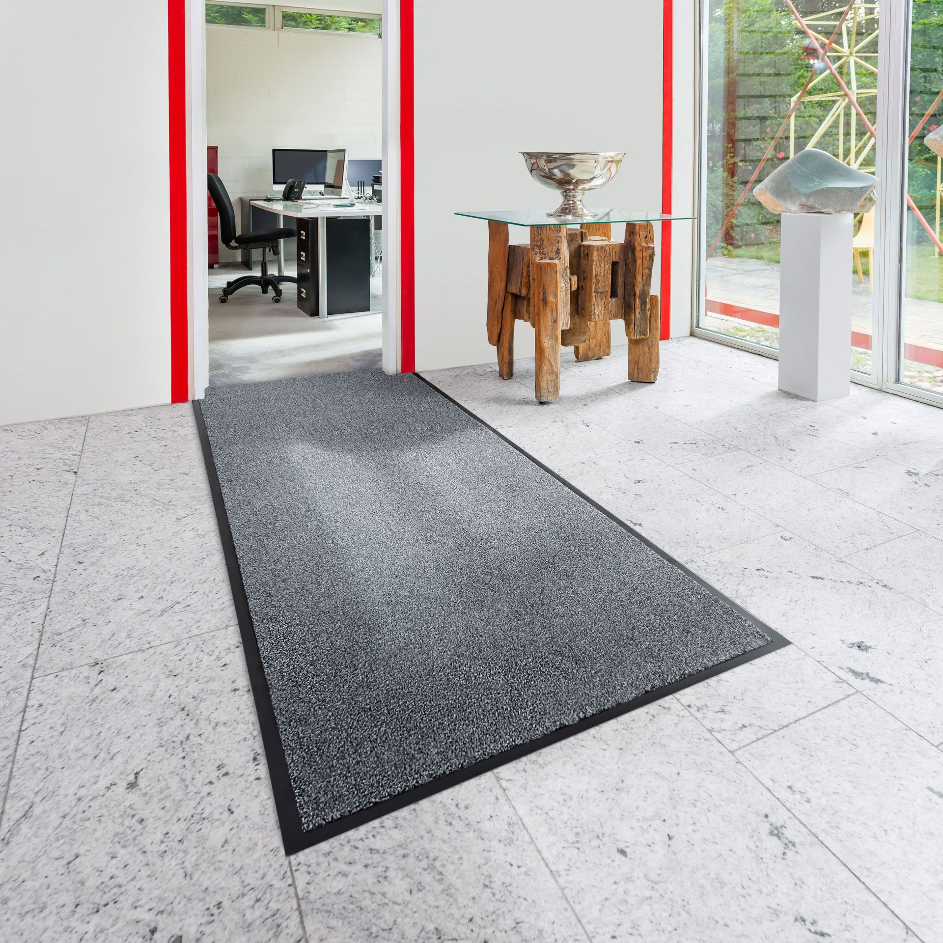 Sagen wir nicht Abtreter dazu. Nennen wir sie auch nicht Dreckschleuder oder Wassergraben, sondern bezeichnen wir sie als das, was sie sind: Schmutzfänger, die dafür sorgen, dass alles draußen bleibt, was nicht hereingehört. Fachlich korrekt: Schmutzfangmatten. Damit sind Matten gemeint, die im Eingangsbereich liegen und auf denen sich Schuhe ohne Aufwand sauber laufen sollen. Deshalb sind Schmutzfangmatten auch meist über einen Meter lang, damit jeder Schuh 2-3 Mal mit ihnen in Kontakt kommt, bevor er sozusagen den Wohn – bzw. Innenbereich betritt. Dabei erzeugen feine Kunstfasern Reibung am Schuhwerk und tragen den Schmutz ab. Dieser wird in der sogenannten Sauberlaufzone aufgefangen und gelangt nicht in den Innenbereich. Außerdem wird Feuchtigkeit absorbiert.