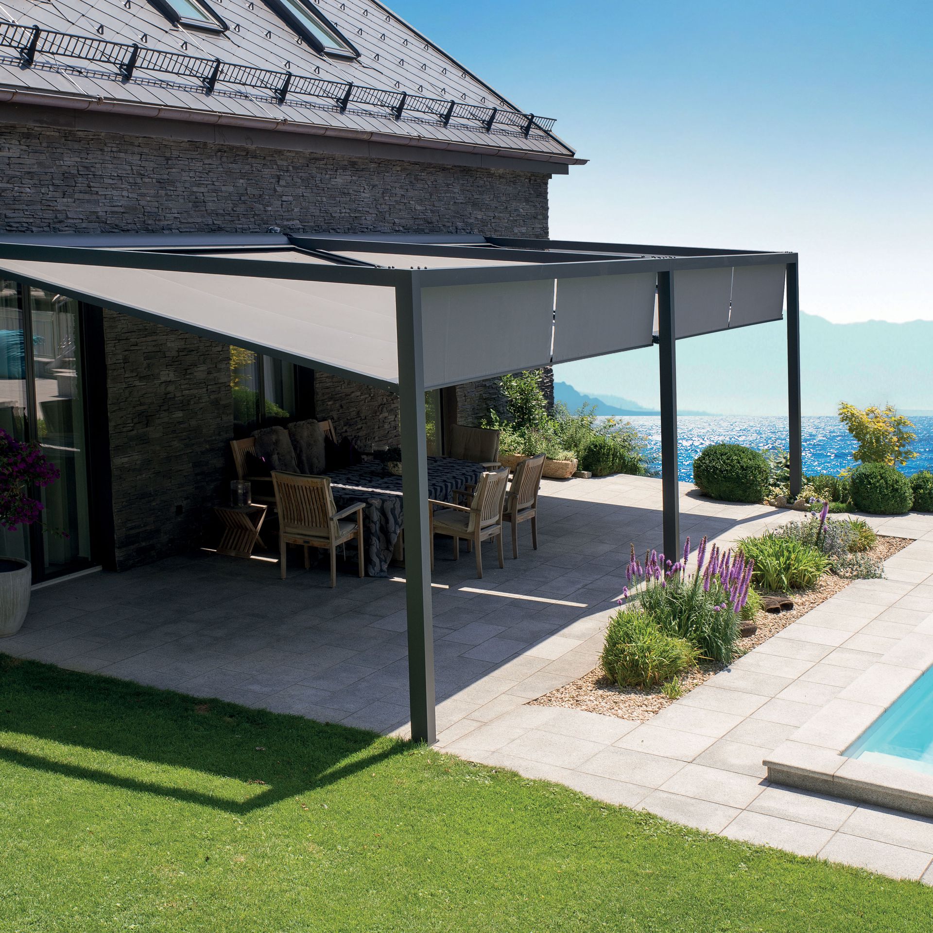 - Seitenmarkisen dienen als idealer Sichtschutz für Terrasse, Garten und Pool. Sie können einfach und unkompliziert installiert und bei Bedarf schnell ein- und ausgezogen werden.