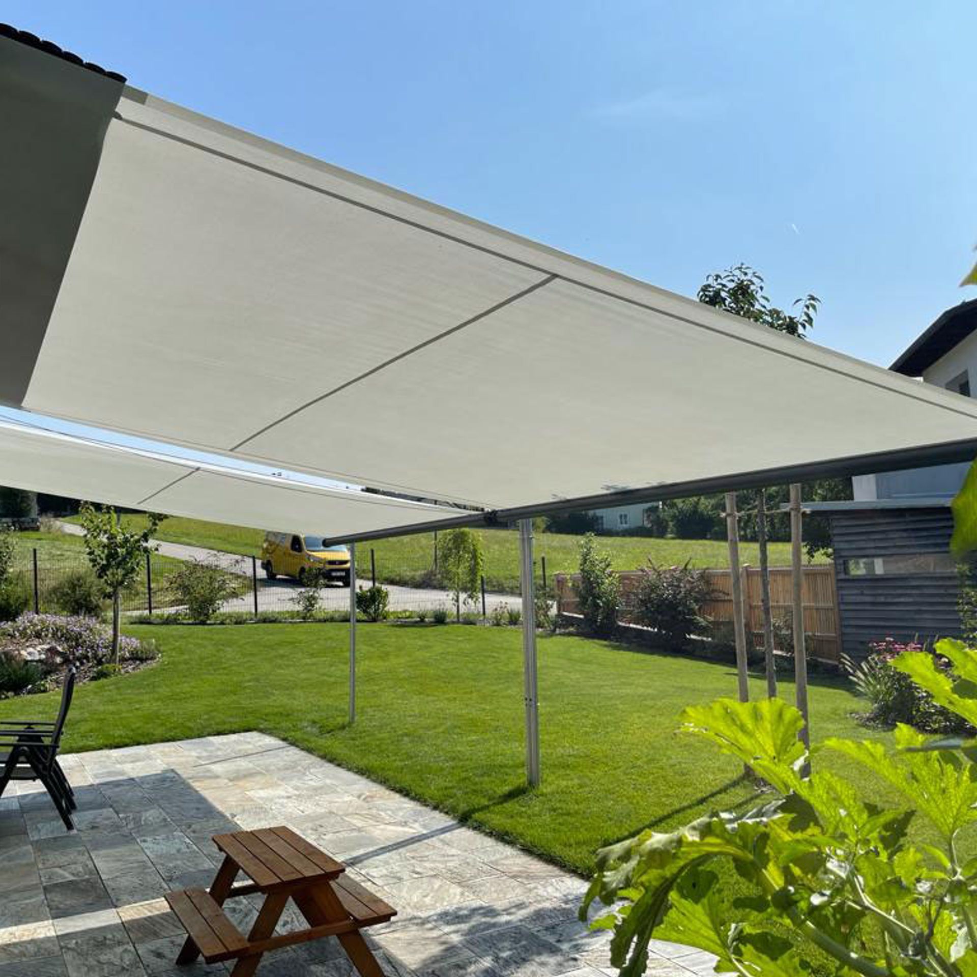 Sonnensegel sind die trendige Alternative zur herkömmlichen Markise. Sie vermitteln Urlaubsgefühle und benötigen vor allem keine Stellfläche. Sehr oft als Segeldreieck ausgeführt, begeistern Sonnensegel mittlerweile auch aus witterungsfesten Stoffen in quadratischen, eckigen und maßgeschneiderten Formen und Größen. Sonnensegel können an der Hauswand oder an freistehenden Edelstahlstangen eingesetzt werden. Die Segel können horizontal oder schräg gespannt werden und dienen damit neben dem Sonnenschutz auch dem Sicht- und Regenschutz. Farblich sind der Fantasie keine Grenzen gesetzt: Sonnensegel gibt es in allen beliebigen Sommerfarben.
